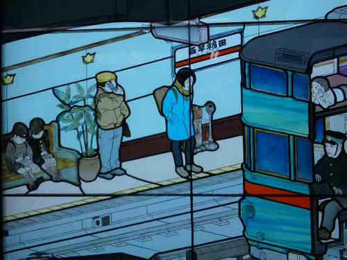 ▽副都心線の西早稲田駅に、山口晃氏のイラスト発見!