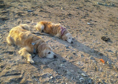 正月に行った葉山の森戸神社の海岸で。親子のワンコロ達に出会う。なごむ…