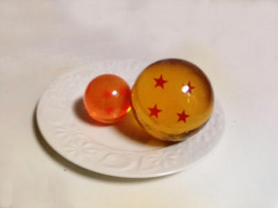 どっちも四星球。右はガラス玉で手のひらサイズ。友人のです。